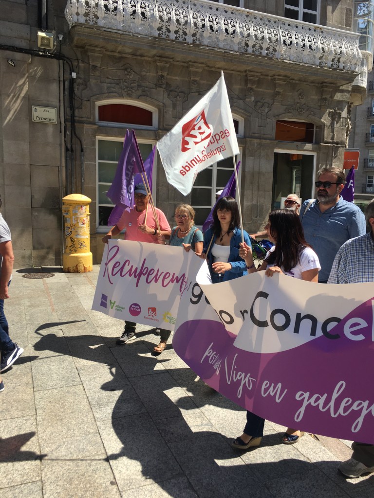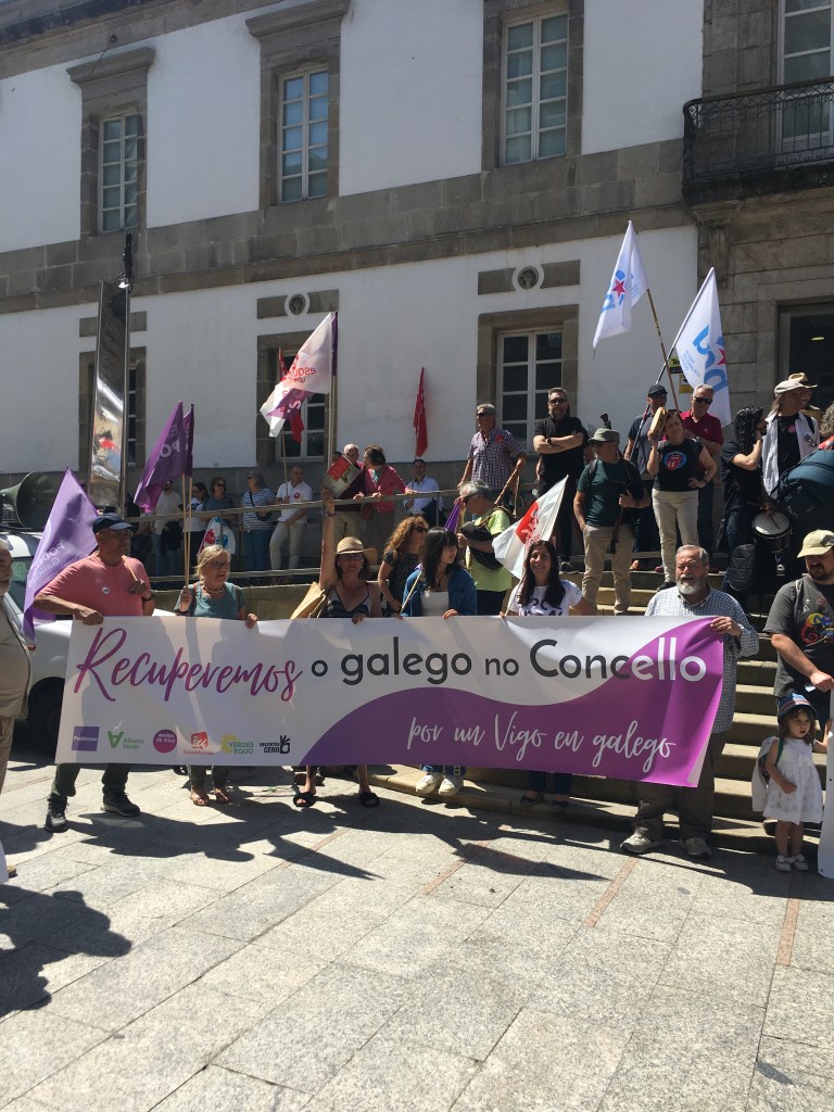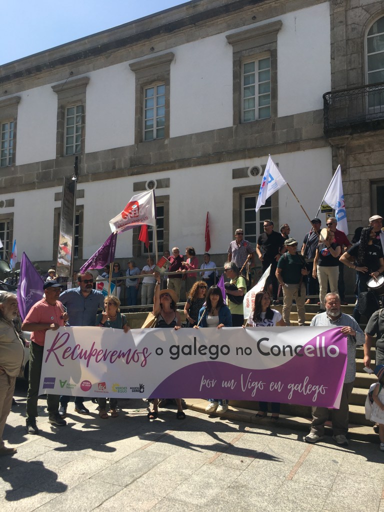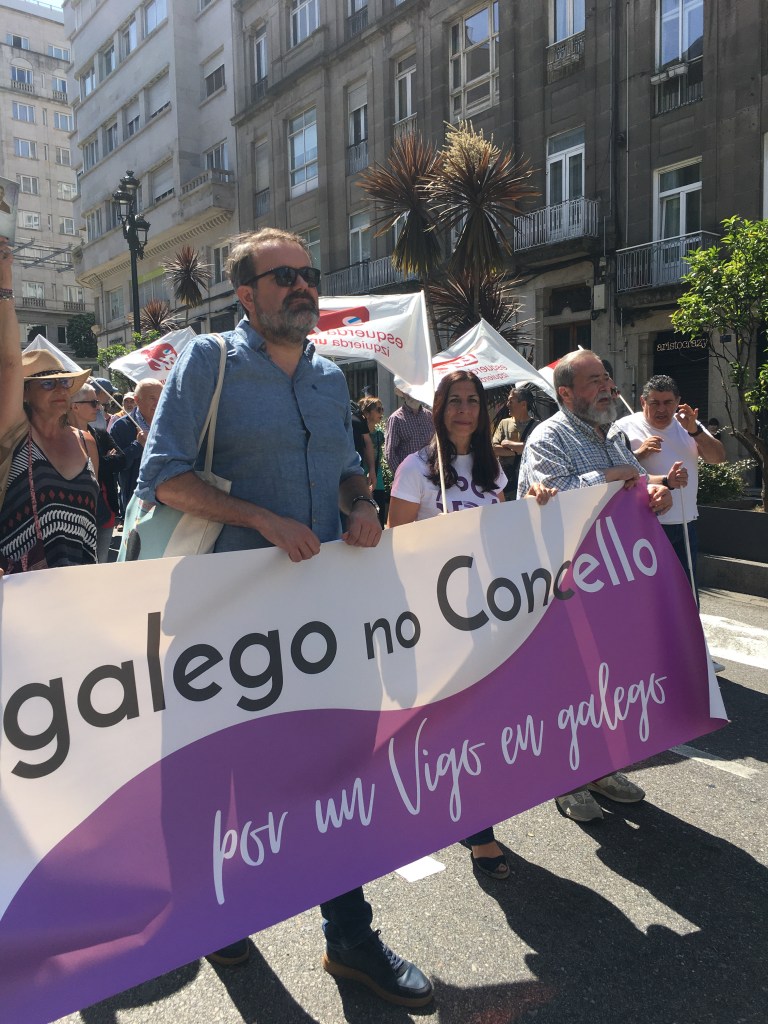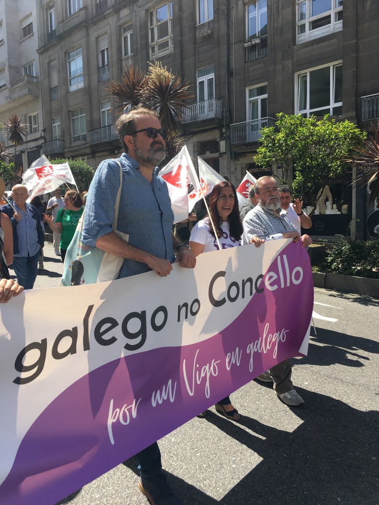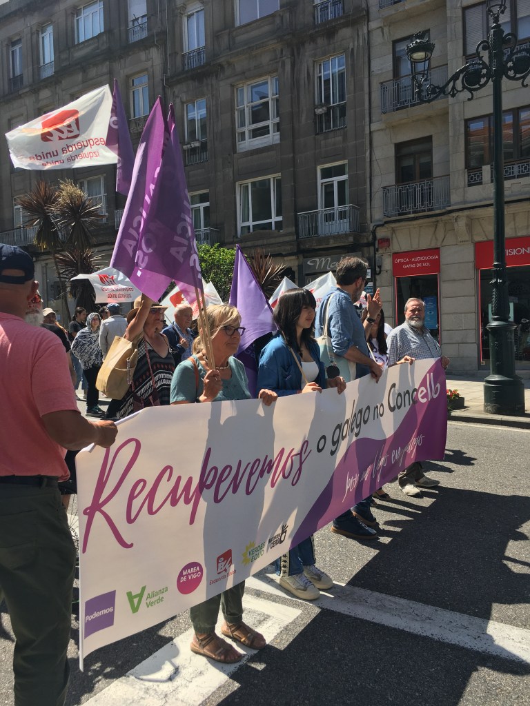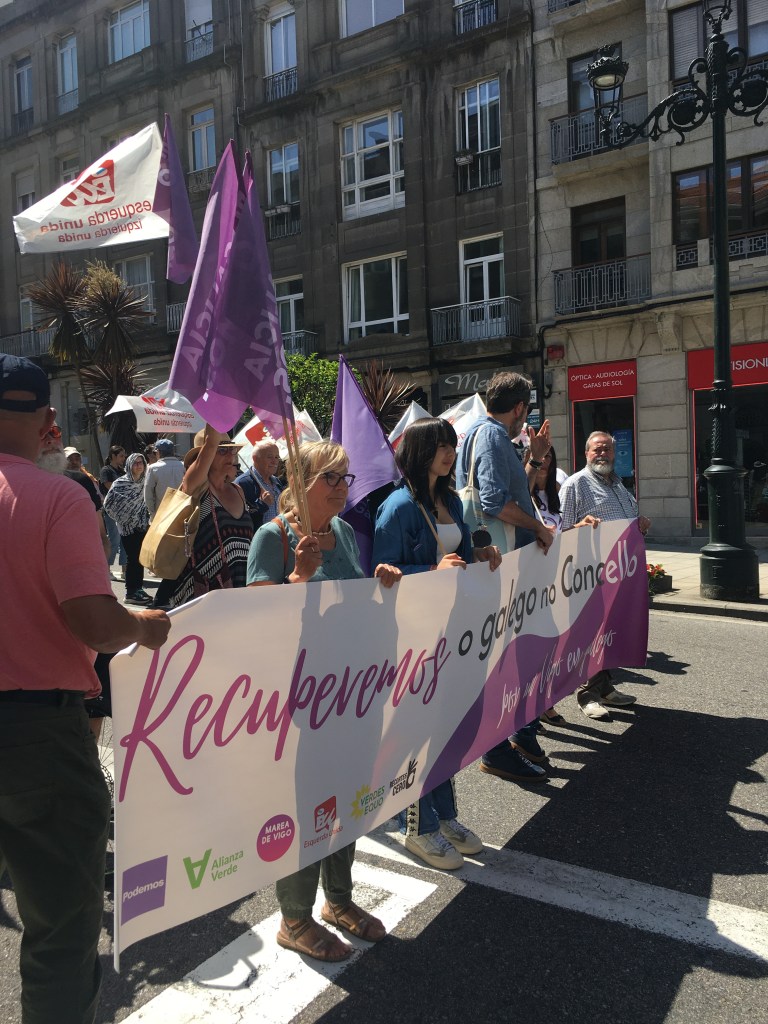 Por todo o exposto, a coalición Podemos – Marea de Vigo participamos activamente na manifestación que se desenvolveu nas rúas do centro da nosa cidade durante o pasado 17 de maio e que fora convocada pola Plataforma Queremos Galego.