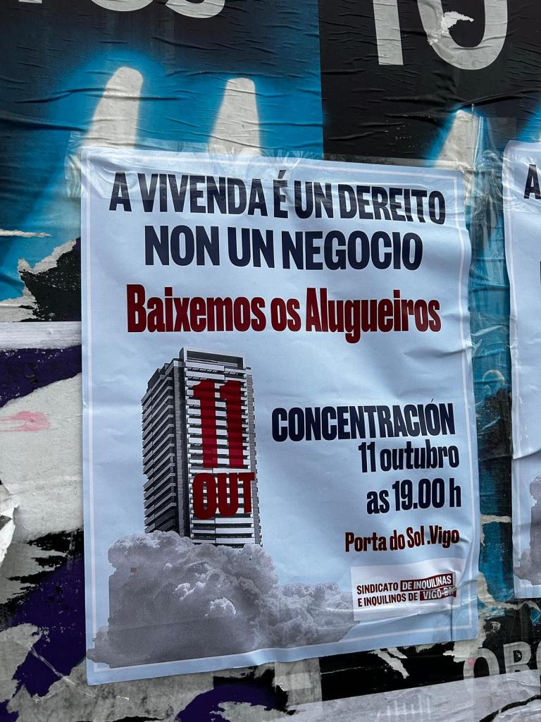 O pasado venres 11 de outubro, un nutrido grupo de persoas congregouse na Porta do Sol de Vigo para participar na manifestación organizada polo Sindicato de Inquilinas de Vigo. A mobilización tiña como obxectivo principal esixir ao goberno que adopte medidas efectivas para frear a escalada de prezos no mercado de alugueiros e impulsar a creación de vivenda pública accesible para toda a cidadanía.