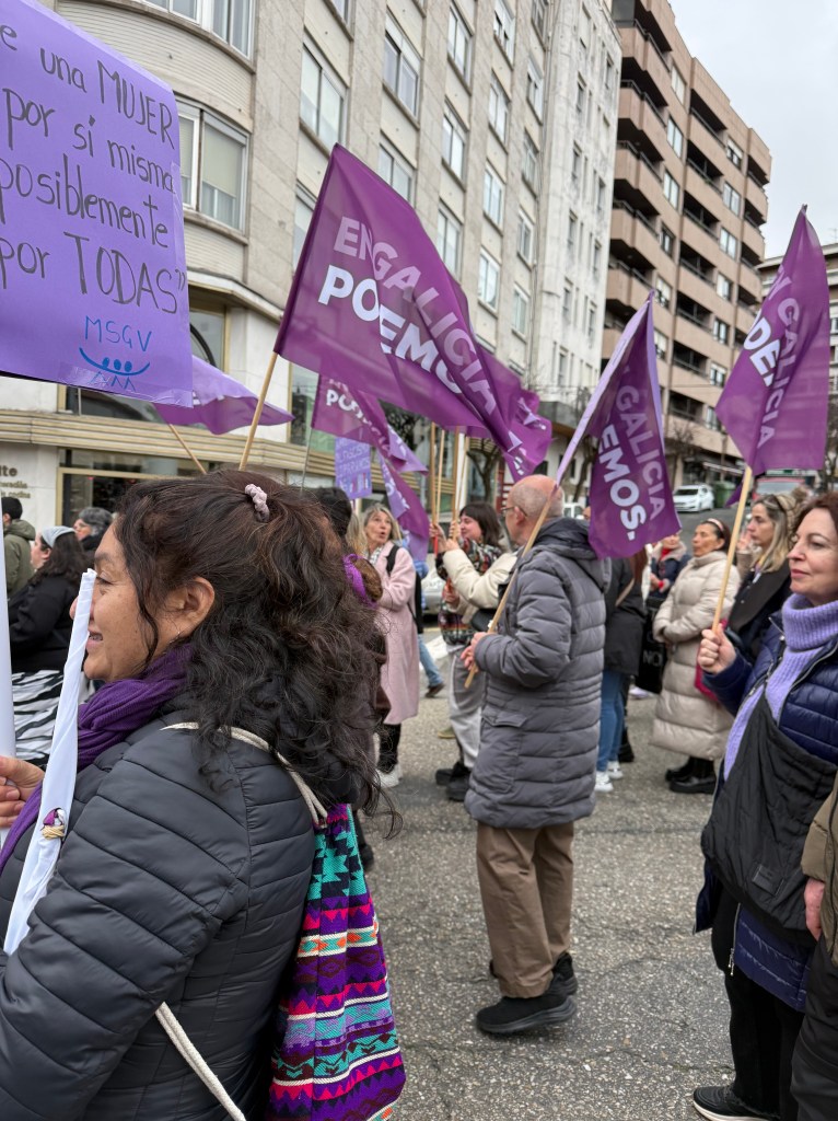 A organización da marcha insistiu nunha idea central: o feminismo non é só unha reivindicación política, senón unha cuestión de supervivencia. Un instrumento para frear o autoritarismo e construír sociedades máis xustas. Entre as organizacións presentes, Podemos Vigo situouse na primeira liña da mobilización, reivindicando o papel da militancia de base e a necesidade de manter viva a presión social.