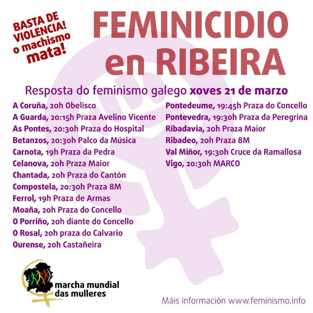 Asasinada unha muller pola súa parella en Ribeira (A Coruña). O feminicida, co que a vítima tiña un fillo en común, tentou suicidarse e foi trasladado ao hospital de Barbanza en estado grave pero aínda con vida.